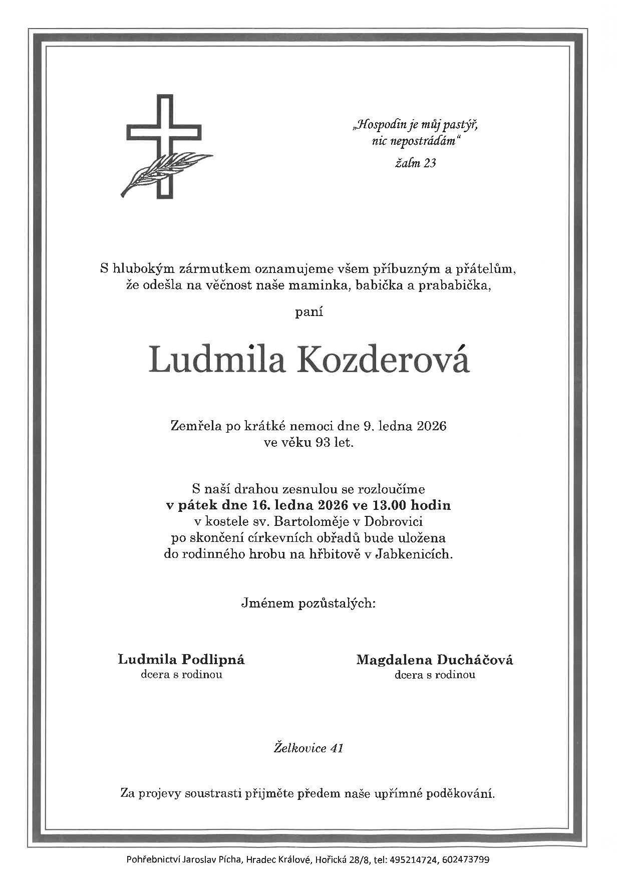 Pohřeb bude v pátek 16.1.2026 v Dobrovici.