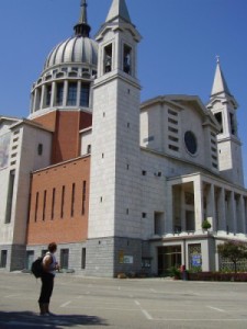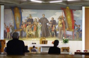 Poslední den, který jsme mohli věnovat sami sobě a svému osobnímu rozjímání, jsem navštívila neobvykle prostorný poschoďový dvojkostel Dona Boska. Ve spodní části je u hlavního oltáře nadživotní obraz ukazující, jak jdou hoši s Matkou Markétou a Donem Boskem na prázdniny za bratrem Josefem. Výjev mě natolik zaujal, že jsem slyšela klukovský hlahol jakoby vycházející z toho obrazu. Hornímu kostelu kraluje vzkříšený Ježíš z lipového dřeva. Svou mohutností předává chuť žít a řešit nevyřešitelné. Pod těmito dojmy jsem vyšla úplně jiným východem z kostela, než jsem chtěla a zabloudila jsem na opačnou stranu areálu, do míst, kde se nachází tiskařské učiliště (i tady mají stále nižší porodnost a tak jsou pyšni na to, že je o jejich školu velký zájem a přichází sem plno žáků).