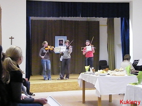 Po mši celebrované Pavlem Hertlem, jsme zhlédli taneční variaci s doprovodem klavíru, malý koncert smyčcového tria a pěvecké vystoupení s doprovodem houslí a klavíru. Vše v podání sestřiček salesiánek a jejich internátních svěřenkyň. Nechybělo ani milé pohoštění ve společenství s hradeckými salesiány spolupracovníky a dalšími přáteli Domu Matky Markéty. Na rozloučenou jsme obdrželi dáreček v tištěné podobě, příběh "Karavana na poušti" od Dona Pascuala Villanuevi.