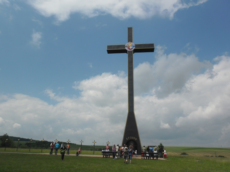 Tentokrát jsme mířili ke svatému kříži. Dojeli jsme k obrovskému kříži, kde byl i překrásný výhled na Karpaty a Slovenskou krajinu. Rozdělili jsme se na pár skupinek. Někteří se pomodlili korunku k Božímu milosrdenství, další hráli s dětmi hru „rybičky, rybičky, rybáři jedou!“ a jiní si povídali, popřípadě se starali o ty nejmenší. A jako třešničku na dort jsme nalezli strom plný třešní. Který jsme ihned začali hladově očesávat. Až nás pak museli vehnat zpět do autobusu, abychom jeli dál.