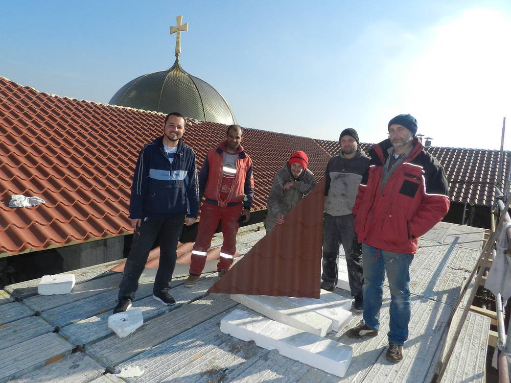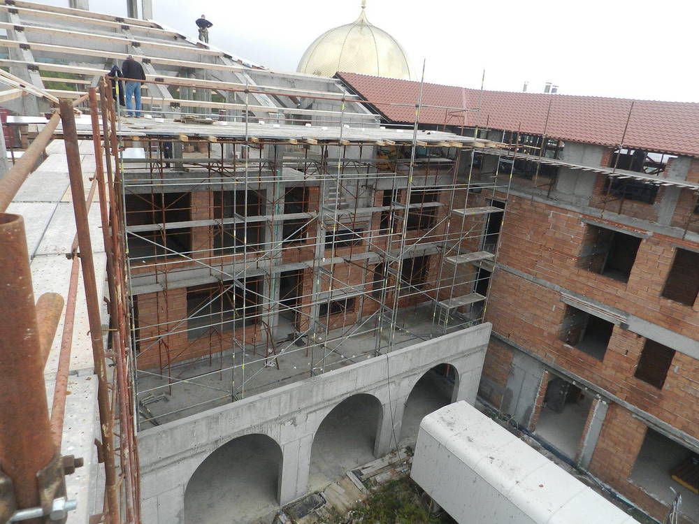 Na jaře přijeli brigádníci ze Sebranic a okolí. Jedna část brigádníků oblékla kopuli kostela do dřevěného hávu a druhá začala řezat a připevňovat střešní izolační panely na připravené trámy. Za 14 dní byla dokončena střecha na 1/3 objektu. Mezitím pokračovaly stavební práce na části školy a do září vyrostla tři nová poschodí. Elektrická instalace pokročila, jsou zkompletovány tři hlavní rozvaděče pro části budov. K dokončení elektrické instalace chybí ještě dvě poslední poschodí a slaboproudé instalace.