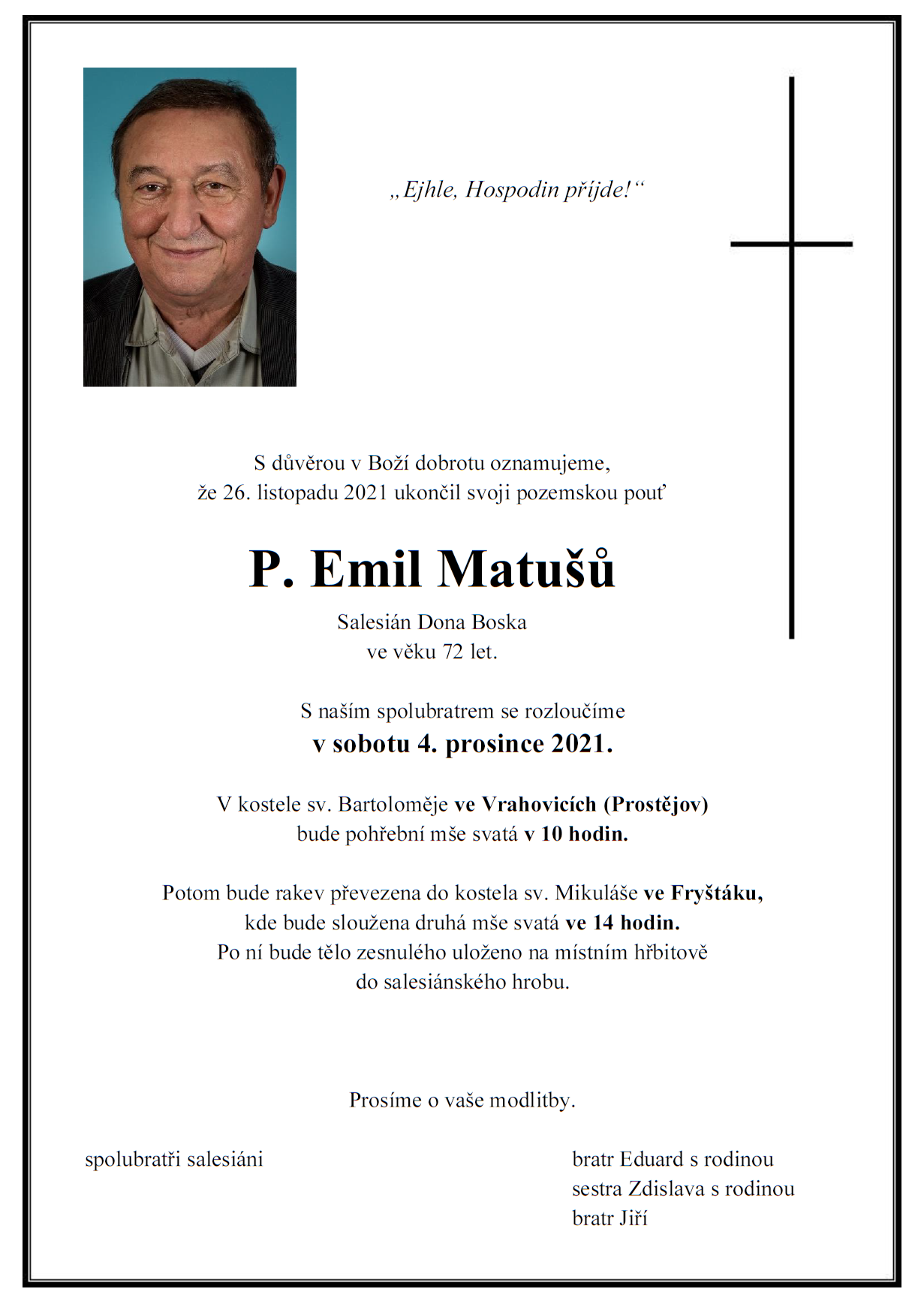 P. Emil Matušů zemřel nečekaně v pátek 26. listopadu 2021.