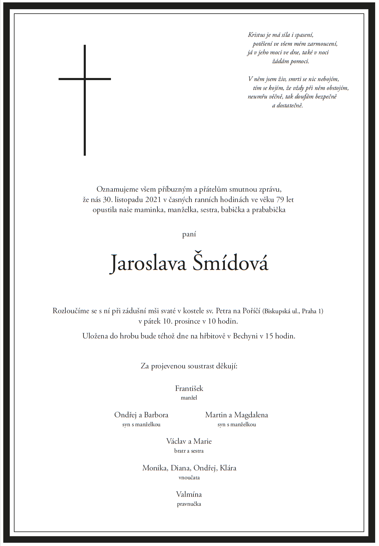 Milí přátelé, zemřela Jaroslava Šmídová, salesiánka spolupracovnice z našeho společenství Praha-Botička. Prosíme všechny o modlitbu. Děkujeme.
