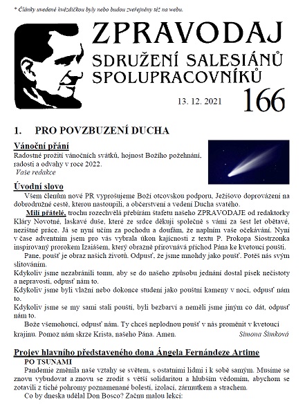 Dnešní, třetí neděli adventní, nazýváme nedělí gaudete, tj. nedělí radostnou. Nejspíš to znamená, že bychom se měli dnes (ale jistě nejen dnes, lépe, zvláště dnes), radovat. Ale, co je to radost? My jsme spíše schopni říci, co radostí není. Radost není ani opakem smutku, ani pouhé veselí. Biblický slovník se nám snaží podat definici radosti jako projev uspokojení z dosažení nějakého dobra. Tomu přece rozumíme. Je-li nám prokázáno nějaké dobro - někdo nám něco dá, něco pro nás udělá, z toho máme, a oprávněně, radost. Avšak, troufám si říci, ještě větší radost zakoušíme, prokážeme-li sami někomu nějaké dobro. Největší radost však můžeme prožívat při setkání s největším dobrem - a tím je Bůh sám.  Zdrojem velké radosti může být i nový Zpravodaj 166.